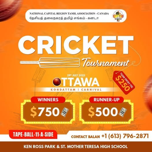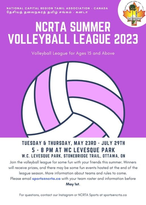 Ottawa Kondattam – Tamil Fest – 2023 Cricket Tournament NCRTA Summer Volleyball League 2023 ← Previous Year Next Year →